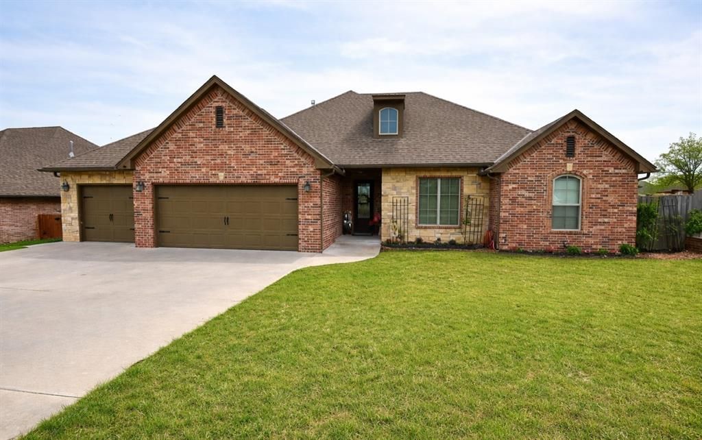 Move in ready on Morning Glory Lane! Beautiful 3 bedroom, 2 bathroom home with an ADDITIONAL LOT in Lakewood addition has lots of space inside and out. Enter through a nice entry way that opens up to a spacious living, kitchen and dining area. Living room has a stunning stone fireplace and floor to ceiling windows that bring the outside light into the room. Kitchen has exquisite granite countertops, undermount stainless sink, center island, stainless appliances and lots of cabinets with a pantry. Dining area is just off the kitchen with views of the backyard. Primary bedroom is large with details that include a tray accent ceiling and access to en-suite. Primary bath has a jetted tub, double sinks, and walk in shower. Bathroom has access to a large closet that conveniently connects to the laundry room. The floor plan for this home has great flow as you move from room to room. The good size office with work space allows you to work from home. Additional bedrooms are good size and share a large bathroom with double sinks and tub/shower. Outside is a great space to play and relax. The additional lot has privacy fencing and the options are endless. The extended back porch has room for a hot tub, grills and lounging furniture. Three car garage has an in ground storm shelter, storage system and overhead doors on both sides of one bay. You really need to see this one in person to appreciate all the pretty details. Grab your favorite Realtor and schedule a showing today!