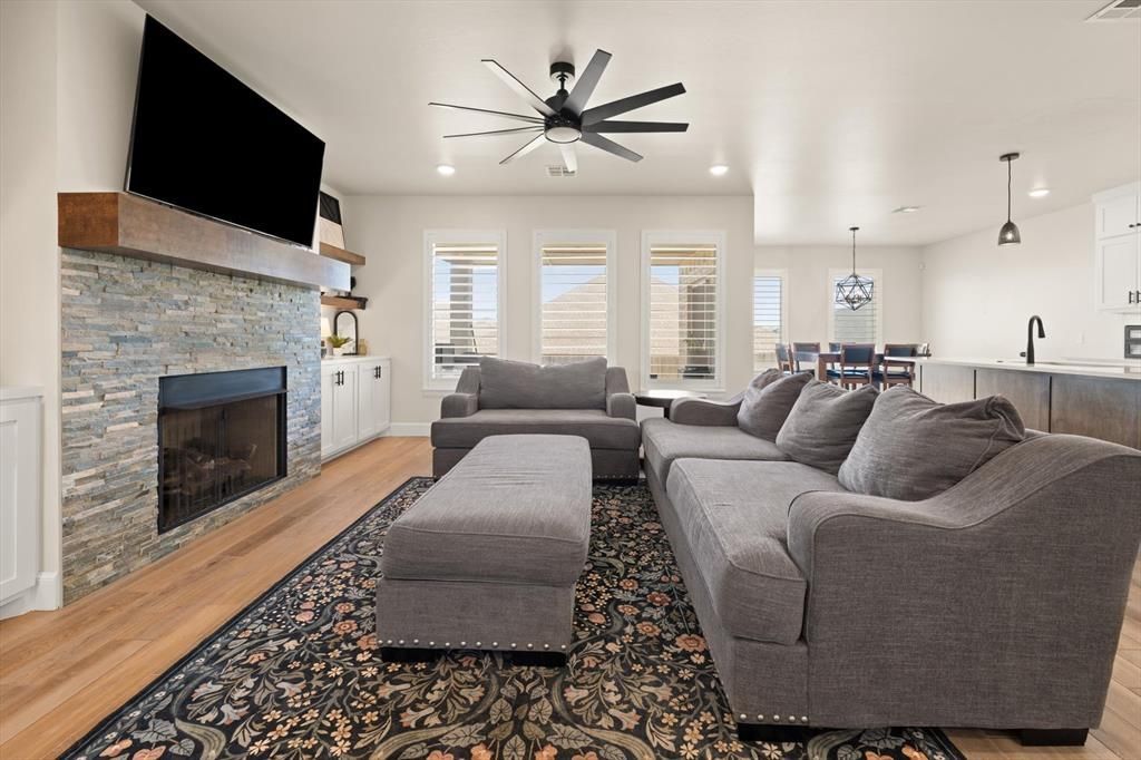 Welcome to 14608 Claxton Place, located in the desirable Montereau community. This beautifully designed home offers a perfect balance of comfort, style, and thoughtful details throughout. The main living room serves as the heart of the home, featuring a gas fireplace centered between custom built-ins and shelving, creating a warm and inviting focal point. The open-concept design allows the living room to flow seamlessly into the kitchen, making it ideal for both everyday living and entertaining. The kitchen is both functional and elegant, showcasing a long center island, double ovens, a 5-burner gas range, abundant counter space, and a convenient butler's pantry for additional storage and prep space. The private primary suite is a true retreat and will not disappoint, offering a beautifully designed bathroom complete with a freestanding soaking tub and an amazing walk-in closet with generous storage. A versatile fourth bedroom provides flexibility and makes the perfect media room, home office, or guest space depending on your needs. Throughout the home you'll find designer tile flooring and classic plantation shutters, adding both style and durability. Additional highlights include a 230-amp electric plug in the garage, tankless water heater, irrigation system, and an oversized 3.5-car garage with insulated garage doors, providing exceptional functionality and storage. Conveniently located just 1.5 miles north of the Kilpatrick Turnpike and within the Piedmont School District, this home offers both accessibility and outstanding value. Residents of Montereau enjoy exclusive community amenities including a neighborhood pool and playground, enhancing the welcoming, family-friendly atmosphere. Don't miss the opportunity to experience the elevated lifestyle this home offers. Welcome Home!