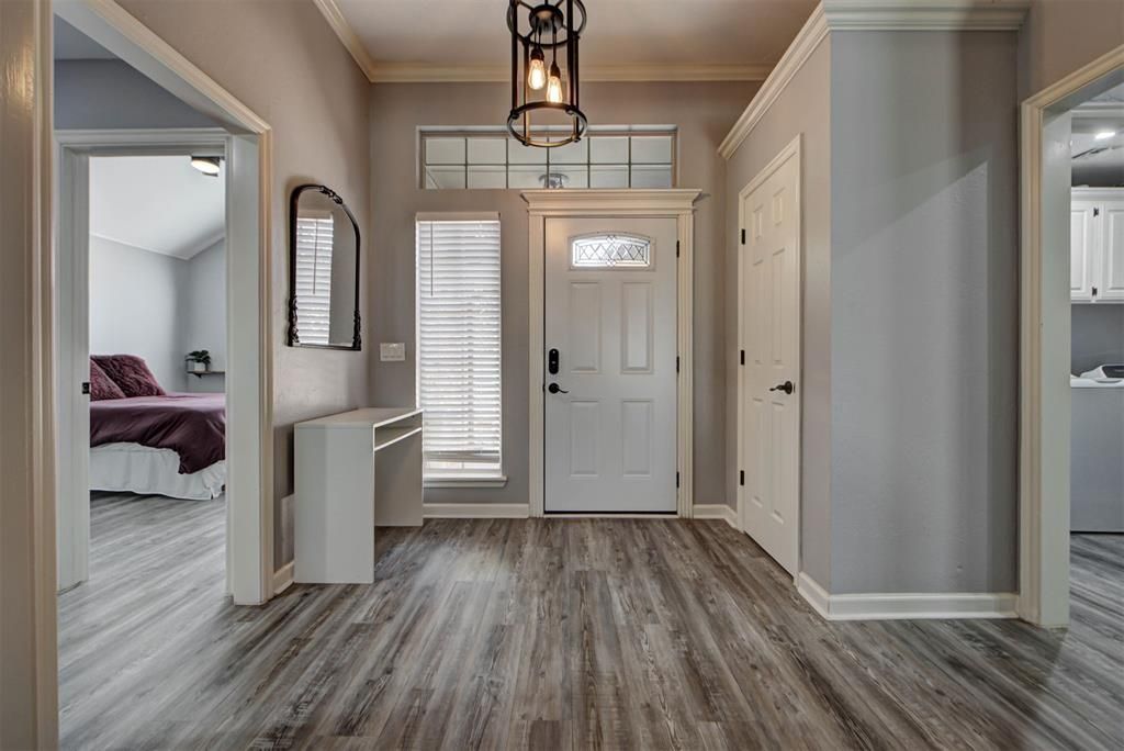 Absolutely beautiful remodeled home in Moore! Just minutes from shopping and dining! This home features Quartz counter-tops, updated bathrooms, interior paint, new energy efficient lighting, recessed lighting and New HVAC system (2022)! Living room is vast with beautiful fireplace with built-in's. Kitchen is open to living room and dining room giving you the open concept feel! Kitchen offers tons of cabinet and counter-top space, breakfast bar and great size dinning area for the big family table! Master bedroom has great space with en-suite with jetted tub, separate shower and huge walk-in closet! Secondary bedrooms are on the opposite side of home with extra storage and main bath. Covered back patio is spacious and great for entertaining! Other updates include beautifully painted garage flooring and completely new flooring throughout home! This home won't last long, schedule your tour today!