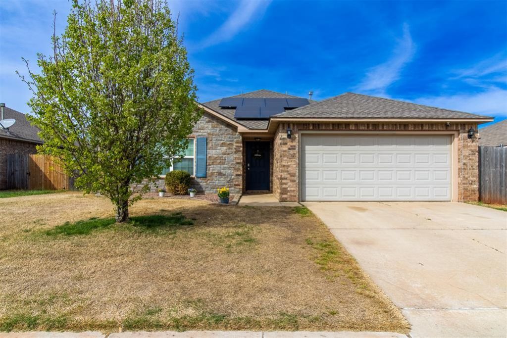 Welcome to this tastefully updated 3-bedroom, 2-bath home featuring an open-concept layout that creates a comfortable and inviting space for everyday living and entertaining. The home also includes solar panels designed to help reduce utility costs (solar loan balance will transfer to the buyer). Thoughtful updates throughout make this home move-in ready.Enjoy the nice-sized backyard with a covered patio, perfect for relaxing evenings or hosting family and friends. You'll also appreciate the in-ground storm shelter located in the garage floor, offering added peace of mind during Oklahoma weather. The neighborhood offers a nearby park for outdoor enjoyment, and the home is located approximately 2-3 blocks from Bryant Elementary.Conveniently located with easy access to 2-40, Tinker AFB, shopping, dining, entertainment, and health care.A wonderful opportunity to own a well-maintained home that blends modern updates, energy efficiency, and a great location.