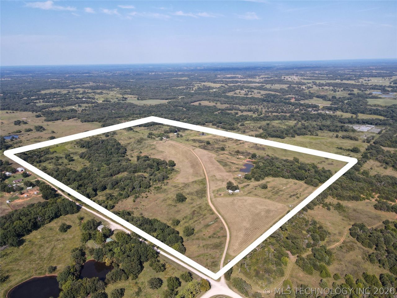 Escape to wide open Oklahoma countryside with this beautiful 160 acre ranch property in Pottawatomie County offering the perfect mix of pasture, water, and mature timber. The property features five ponds, a hayfield, and scattered trees, creating an ideal setup for cattle, horses, or recreational use while attracting abundant wildlife including deer. Canadian River is located just a short drive away, adding even more outdoor appeal. The property has a 2-bedroom, 2-bath home with surrounded by scenic views. The house place has a wood burning fireplace, with both well and rural water, and a two car detached garage. The property also includes a barn that provides storage for ranching equipment, livestock, or hobby projects. The land is nearly fully fenced, with cross fencing. Approximately 20% of the acreage is wooded with large mature trees, offering shade, privacy, and prime wildlife habitat. Conveniently located less than a mile from Highway 39, this property offers easy access while still providing the quiet country lifestyle. Situated roughly 60 miles from OKC, it's an excellent opportunity for a working ranch, weekend retreat, or investment property. If you've been searching for large acreage with water, pasture, and a home already in place, this property offers exceptional potential in a beautiful rural setting.
