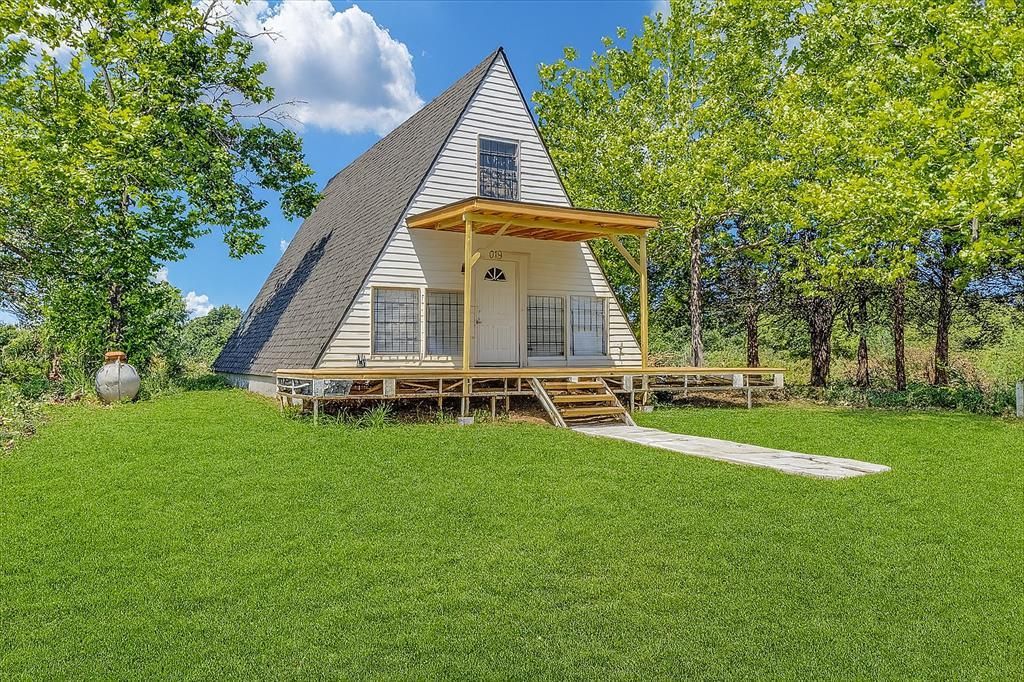Welcome to 5357 Ranch Rd in Kingston, Oklahoma. An incredible opportunity to own a fully remodeled A-frame retreat on 5 acres, just minutes from the sandy beaches of Lake Texoma. Whether you're dreaming of lake life, a weekend getaway, a horse property, or a short-term rental investment, this one checks all the boxes. Step inside to find a thoughtfully updated interior featuring new luxury vinyl plank flooring, fresh paint throughout, and custom trim and baseboards that add a clean, modern touch. The kitchen has been completely transformed with brand-new cabinets, Urban Graphite laminate countertops, and all new appliances including a refrigerator, dishwasher, and gas range. The primary bathroom is fully updated with a new vanity, countertops, and a large walk-in shower. Every detail has been carefully considered, from the new staircase treads to new exterior doors, creating a cohesive and stylish space throughout. This home blends rustic charm with modern comfort, featuring new vinyl siding and newly stained porches on both the front and back. Major system upgrades include a new roof, HVAC, and all-new PEX plumbing. The existing well and septic system are in place and fully functional. Washer and dryer convey. With easy access from a paved road and plenty of room for horses, toys, or future expansion, the land offers flexibility and freedom. Additionally, a nearby brand new boat slip is available for purchase separately, offering a great opportunity to enhance the lake lifestyle. Contact listing agent for details and pricing. Whether you're looking for a quiet homestead, a vacation property near the lake, or a high-demand short-term rental, this turnkey property offers the best of country living and lake life in one complete package.