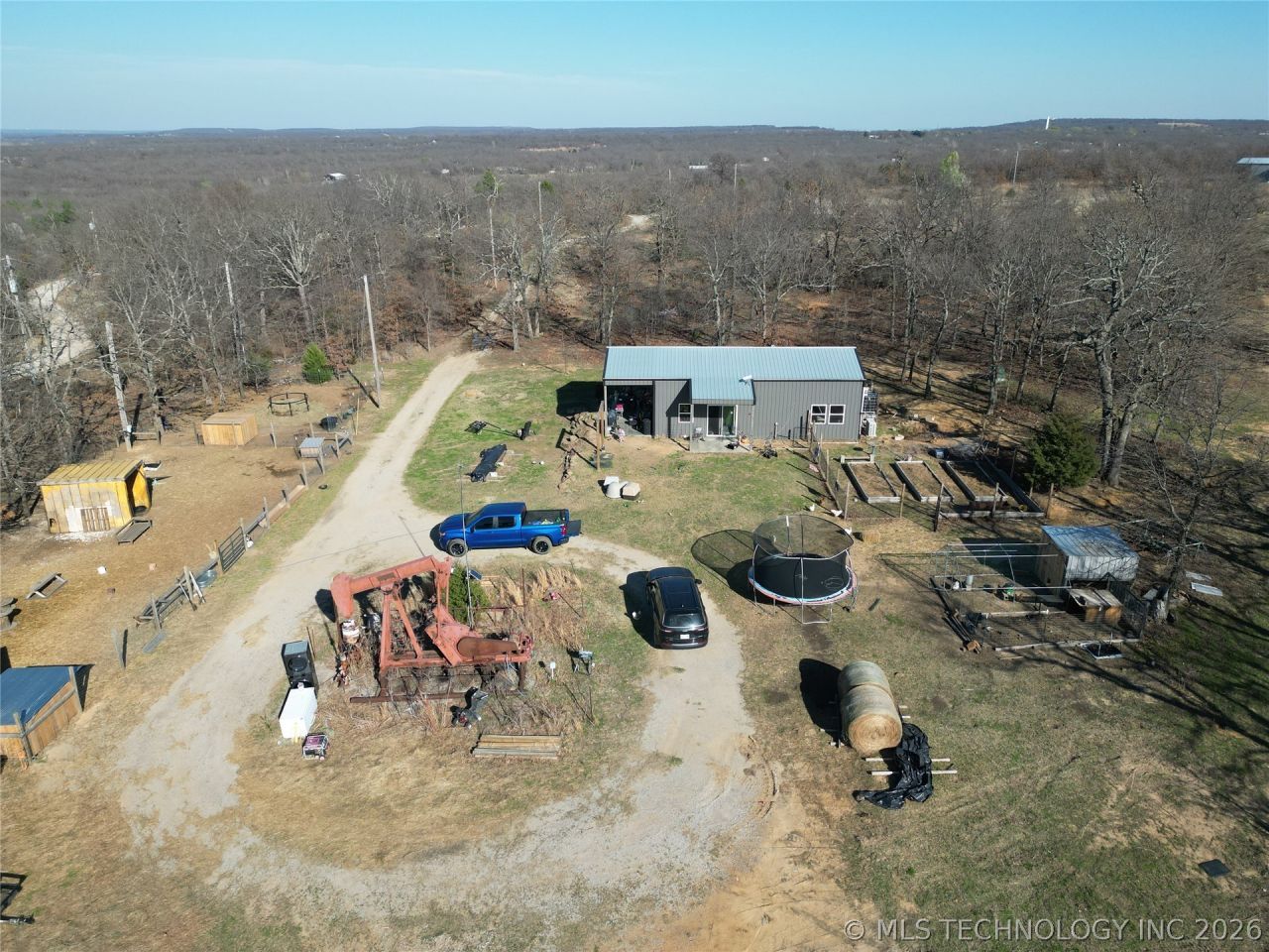 Rare opportunity to own 55 (+/-) acres in Osage County with a versatile barndominium and additional barn-perfect for country living, recreation, or a homestead setup! The barndo (25'x40') offers a functional open-concept design where the living room and kitchen flow together seamlessly. The home includes 3 bedrooms (one currently used for storage and ready to be finished out), 1.5 bathrooms, and a unique kitchen with bar area-great for gathering and entertaining. Built with a durable wood frame, metal roof, and metal siding for low-maintenance living. Enjoy the outdoors with a spacious 10'x40' covered porch plus an additional 5'x10' patio area. Utilities include city water and electric, with septic servicing the home. Heating and cooling provided by a mini-split system with one outdoor unit and two interior units. The property also features a matching 25'x40' barn with water already run to it, offering excellent potential for a workshop, livestock use, or future living space. The barn is plumbed, though electric and septic have not yet been installed. This property provides plenty of room for livestock, hunting, riding, or simply enjoying the wide-open space.