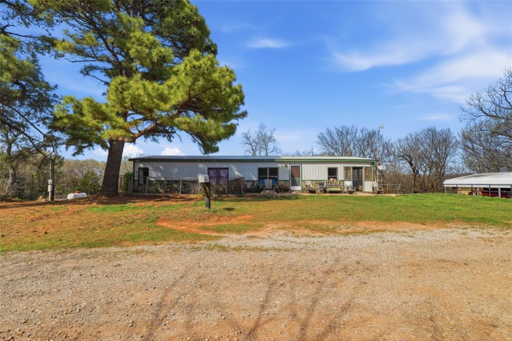 Beautiful country home with lake access and views. There is a massive concrete slab with two large carports and large insulated garage / workshop. The home has a very large enclosed porch on the East side. Enter through the large enclosed porch into a large kitchen with tons of cabinets and counter space. To the West is a large living area and to the South is a large formal dining room. As you move through the dining room you'll enter a 2nd large living area. Down the hallway there are 3 bedrooms and 2 full bathrooms. Both bathrooms have been updated with beautiful tile showers and new vanities. The concrete slab is well built and the carports / workshop could be removed to add a shop or new home. You'll enjoy private lake access and stunning lake views.